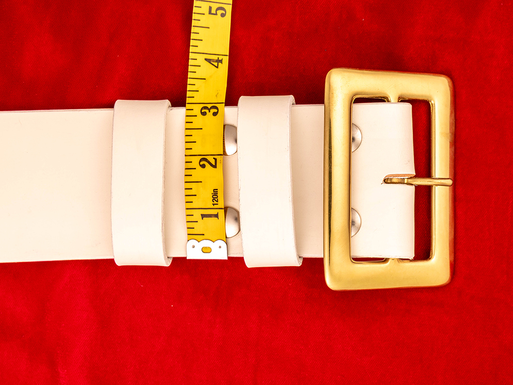 Each belt has two holes one inch apart on both sides of the chosen size. For example, if you choose a 40″ belt, your belt will go from 38″ to 42″ with 40″ being the middle hole. Price for 1″ belts with a buckle